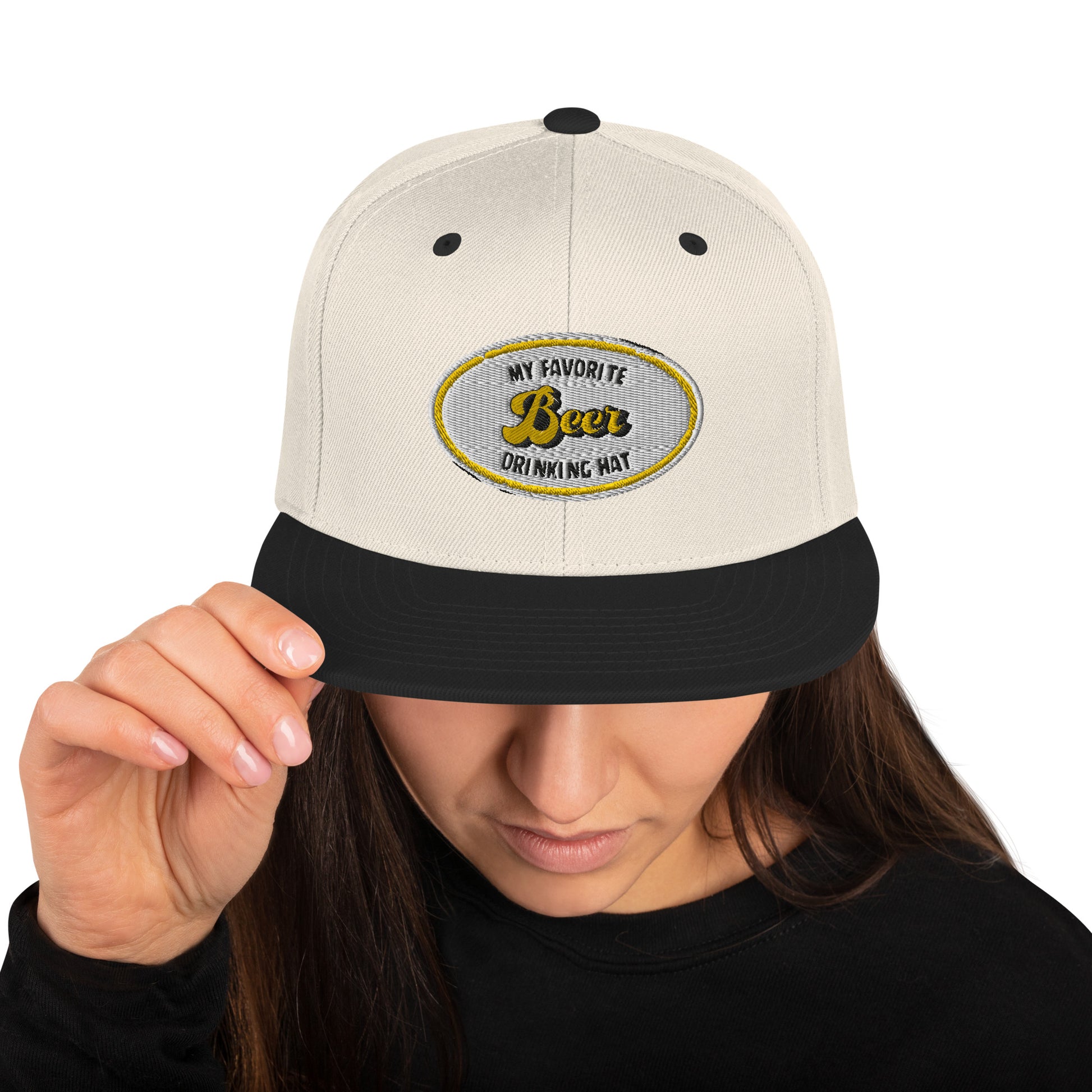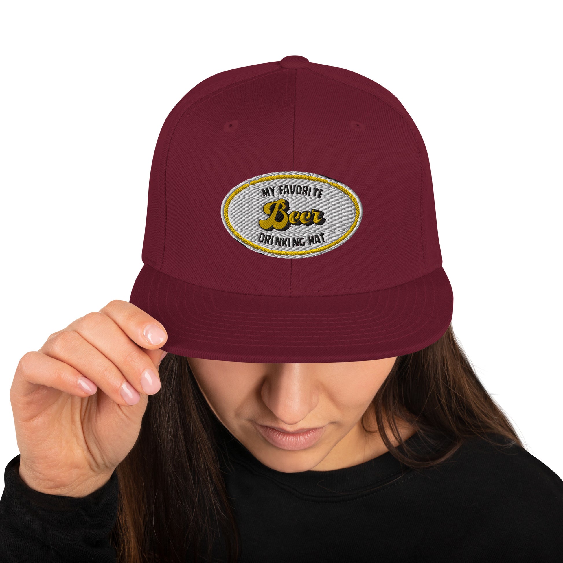 This hat is structured with a classic fit, flat brim, and full buckram. The adjustable snap closure makes it a comfortable, one-size-fits-most hop heads.