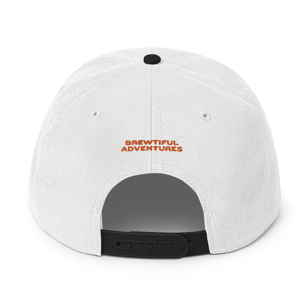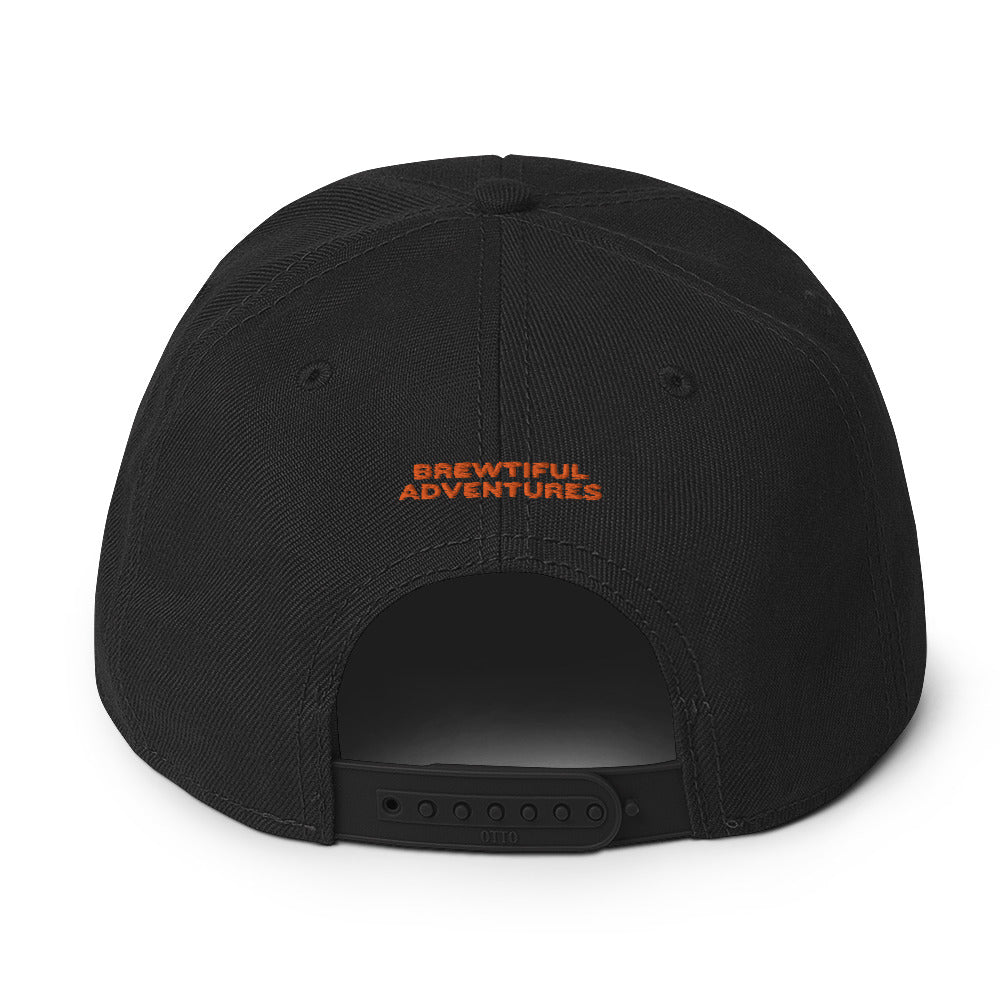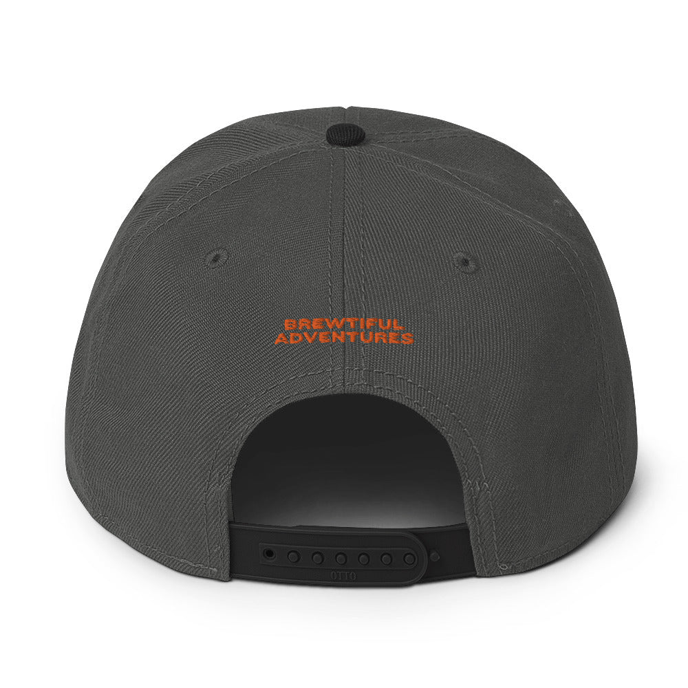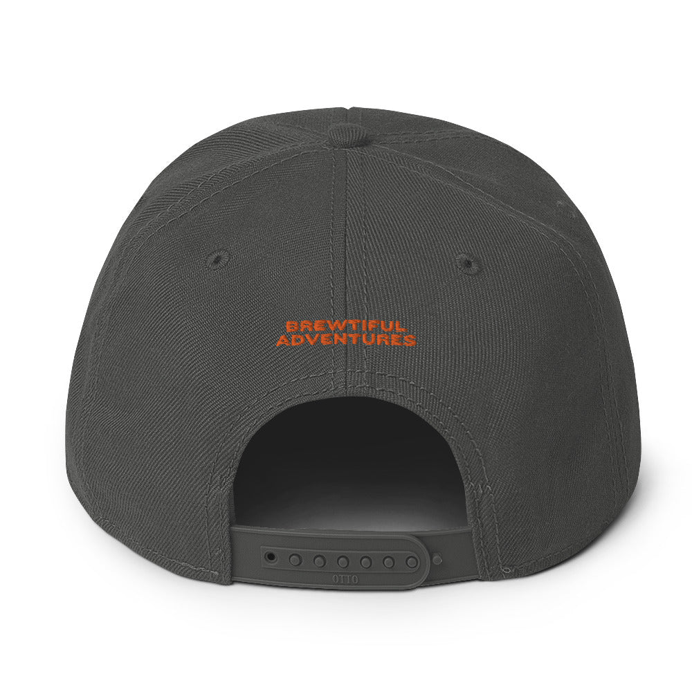 This hat is structured with a classic fit, flat brim, and full buckram. The adjustable snap closure makes it a comfortable, one-size-fits-most hop heads.